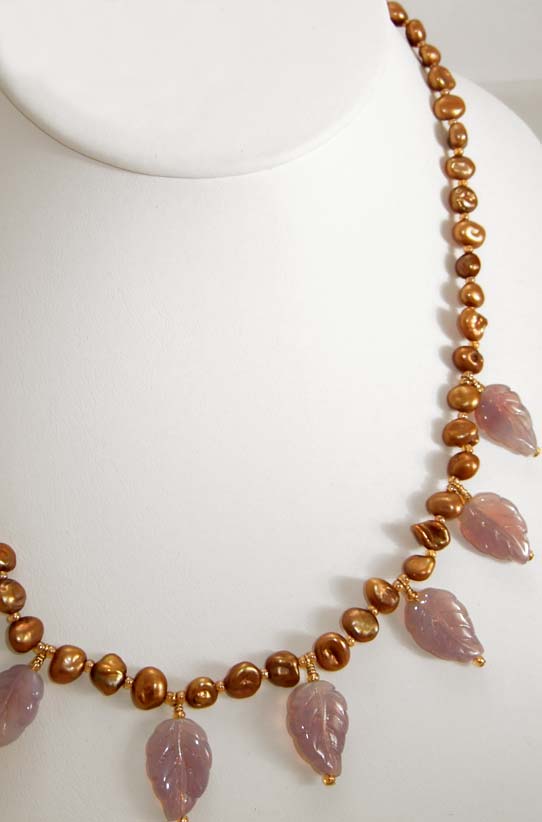 Gold pearl & vintage lavendar leaves set. 18"