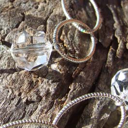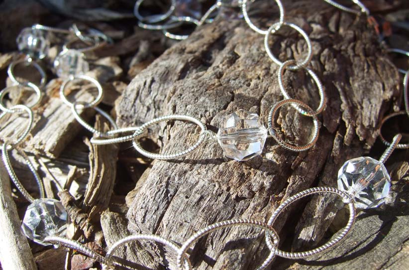 Large textured oval sterling chain with brilliant, clear crystals. Handwrapped with sterling silver wire. 27"