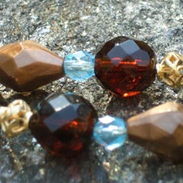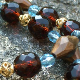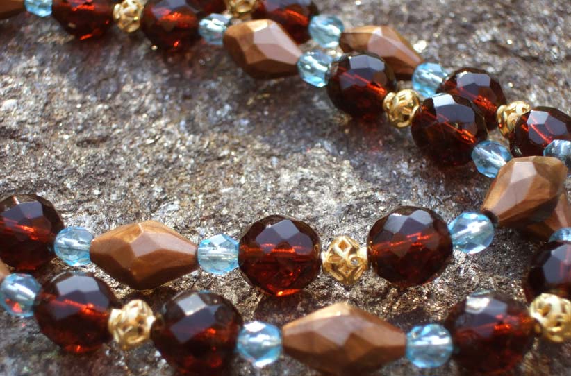 Vintage German glass with acrylci and gold-vermeil. Strung on gold-plated wire with gold vermeil clasp. Approx 40". Can be worn long or doubled.