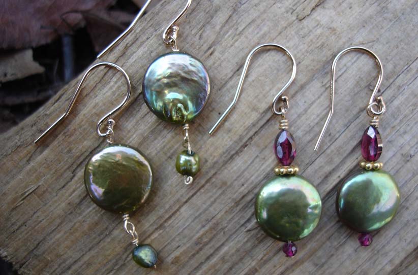 Freshwater pearl & gem drops on silver or gold-fill ear wires. Color combinations available upon request.