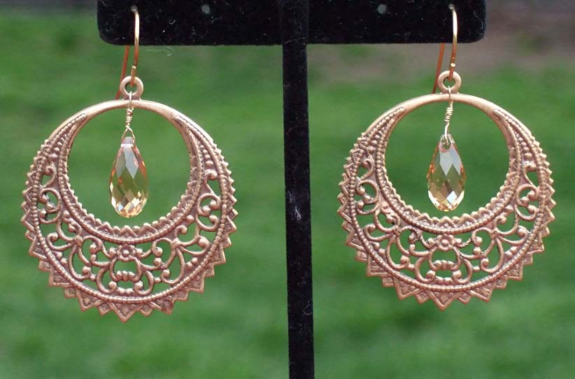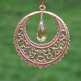 Filigree hoop & Swarovski crystal drops. 1.75" diameter.