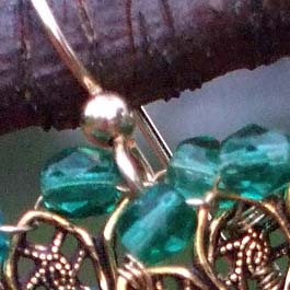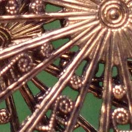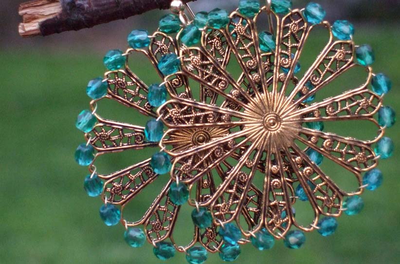 Vintage filigree & green glass pinwheel earring, 1.75" diameter.