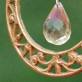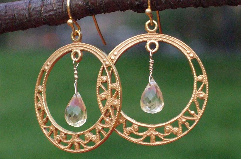 Vintage filigree hoop with citrine drop, 1" diameter.