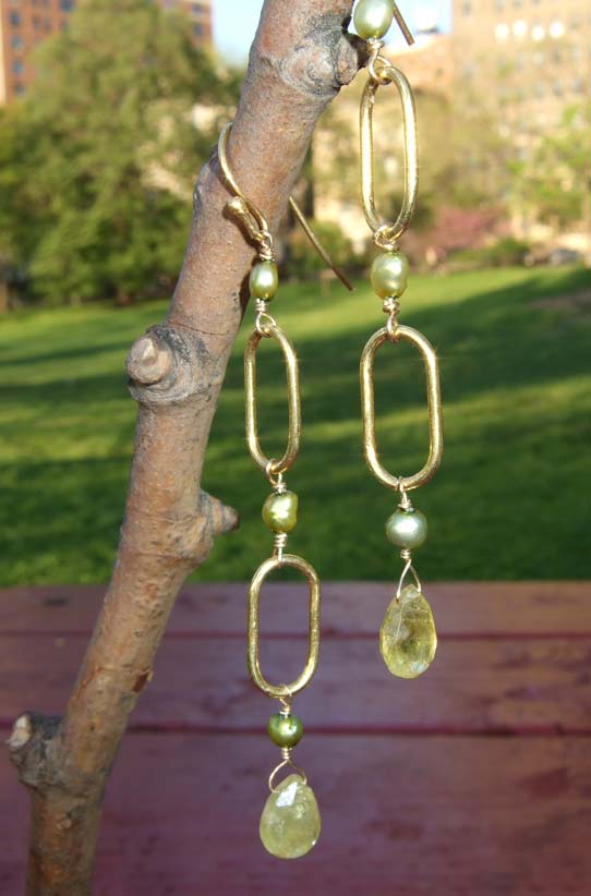 Vermeil links & peridot drops. 3". Multiple stones/gems vailable upon request.
