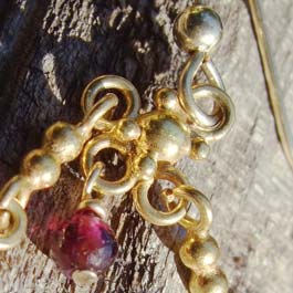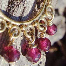 Gold vermeil chandelier with sparkling, faceted garnet drops.